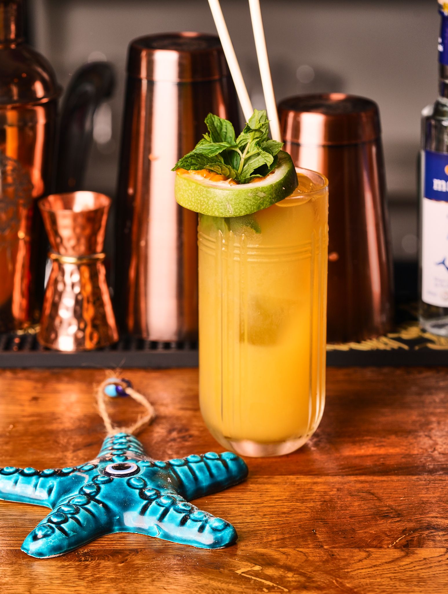 במקום בולט בר האלכוהול המרשים, תפריט היין המתבסס על יקבים ישראלים ובינלאומיים כשרים, כמו גם למעלה מ-20 סוגי אוזו ממגוון הטברנות היווניות המובילות, וקוקטיילים ים-תיכוניים מרעננים.
