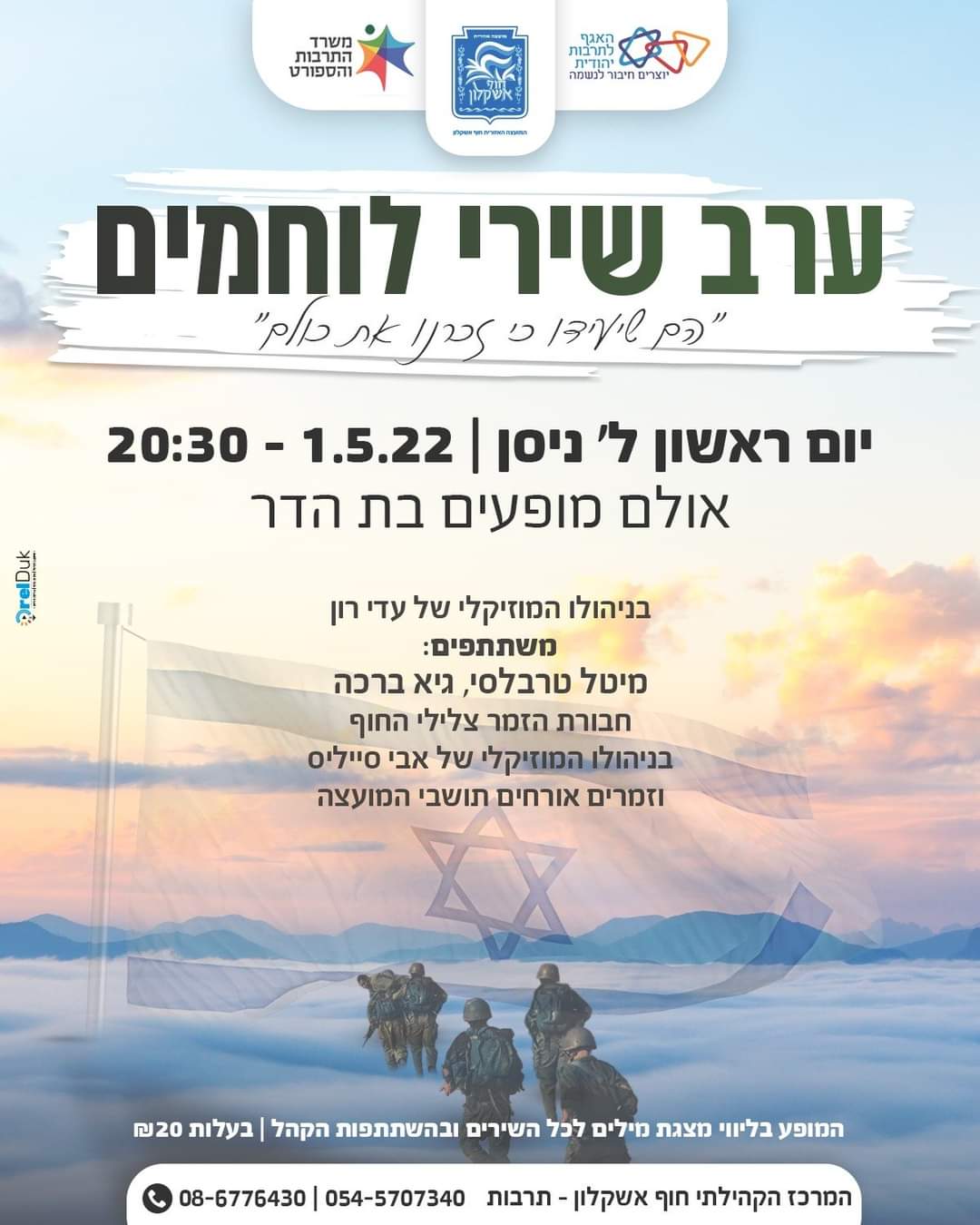 יום א' | 1/5/2022 | ל' בניסן | 20:30 | אולם מופעים מתנ"ס בת הדר.
