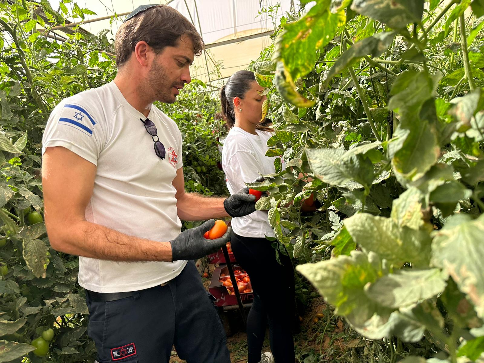 החובשים ממוקד 101 של מד"א יצאו להתנדב בקטיף עגבניות ביישוב אוהד במועצה האזורית אשכול