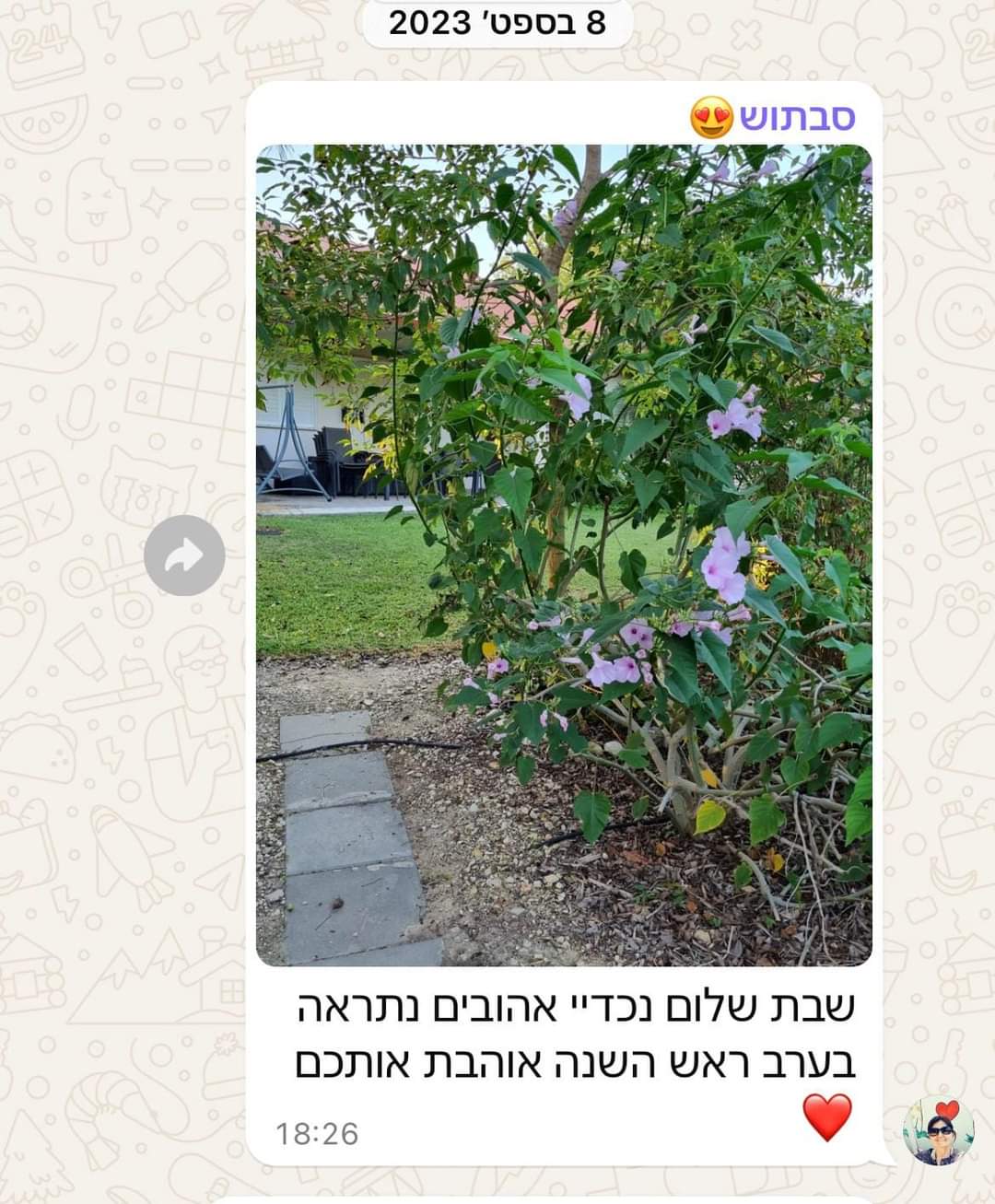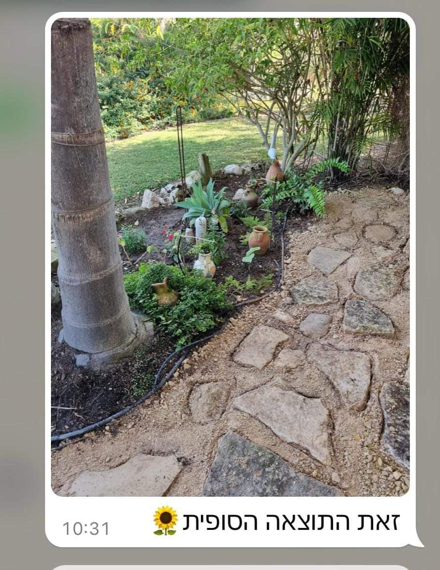 בגינה השקיעו צינורות השקייה שכבר מושרשות. צירפתי כמה מההודעות ששלחה לנו (וזה על קצה המזלג) כדי להעביר לכם את אהבתה לגינה והשיתוף שלה איתנו בעשייה שלה בגינון. זו הייתה המלאכה שלה. אשמח לשיתוף הפוסט, מוזמנים ליצור איתי קשר בוואטסאפ בנושא - 0547663252 תודה מראש ".