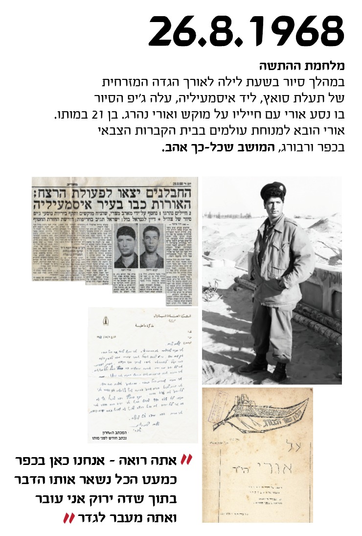 "באחד מחיפושי אחר האנשים בתמונה הגעתי לקבוצה בפייסבוק של מלחמת ההתשה. מישהו כתב שם: אדם מת פעמיים. האחת ביום שהוא נהרג ונפרד מהעולם, השנייה שלא זוכרים אותו. אחרי 53 שנים, זכרונו של אורי ז״ל מונצח וכולי תקווה שבכך יזכרו אותו."