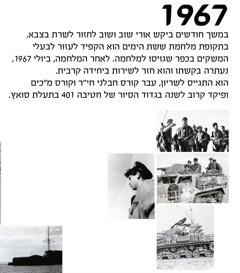 "כשמצאתי את קופסת הנעליים הרגשתי דחף עצום לעשות משהו עם הממצא. היו שם מעל 400 תמונות, רובן שייכות לאורי, חלקן לאחים, בתמונות - שלוש תקופות בחייו הקצרים נערות במושב, גרעין הנח״ל בחצבה ויחידת הסיור בתעלת סואץ - שם אורי נהרג. מסתבר שהוא נהג ללכת ״חמוש״ במצלמה ולתעד אנשים מקומות, רגעים מיוחדים שלו ושל אחרים לידו".