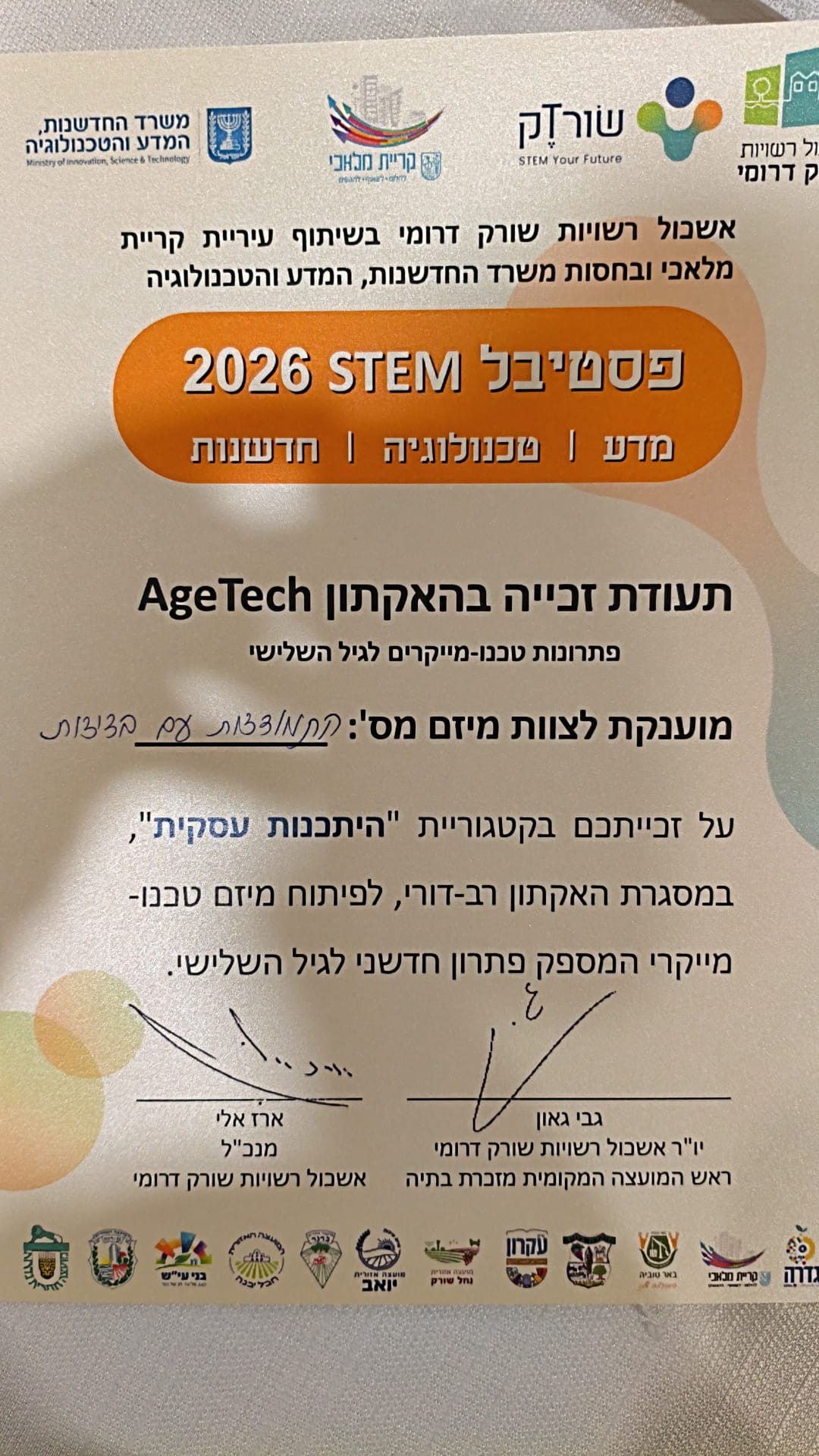 שני מיזמים רב־דוריים ממועצה אזורית יואב זכו להישגים מרשימים בהאקטון AgeTech במסגרת פסטיבל STEM 2026