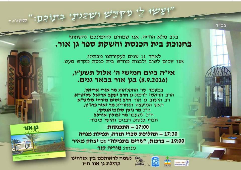 11 שנים אחרי הגירוש יחנך בית כנסת חדש עבור התושבים בבאר גנים