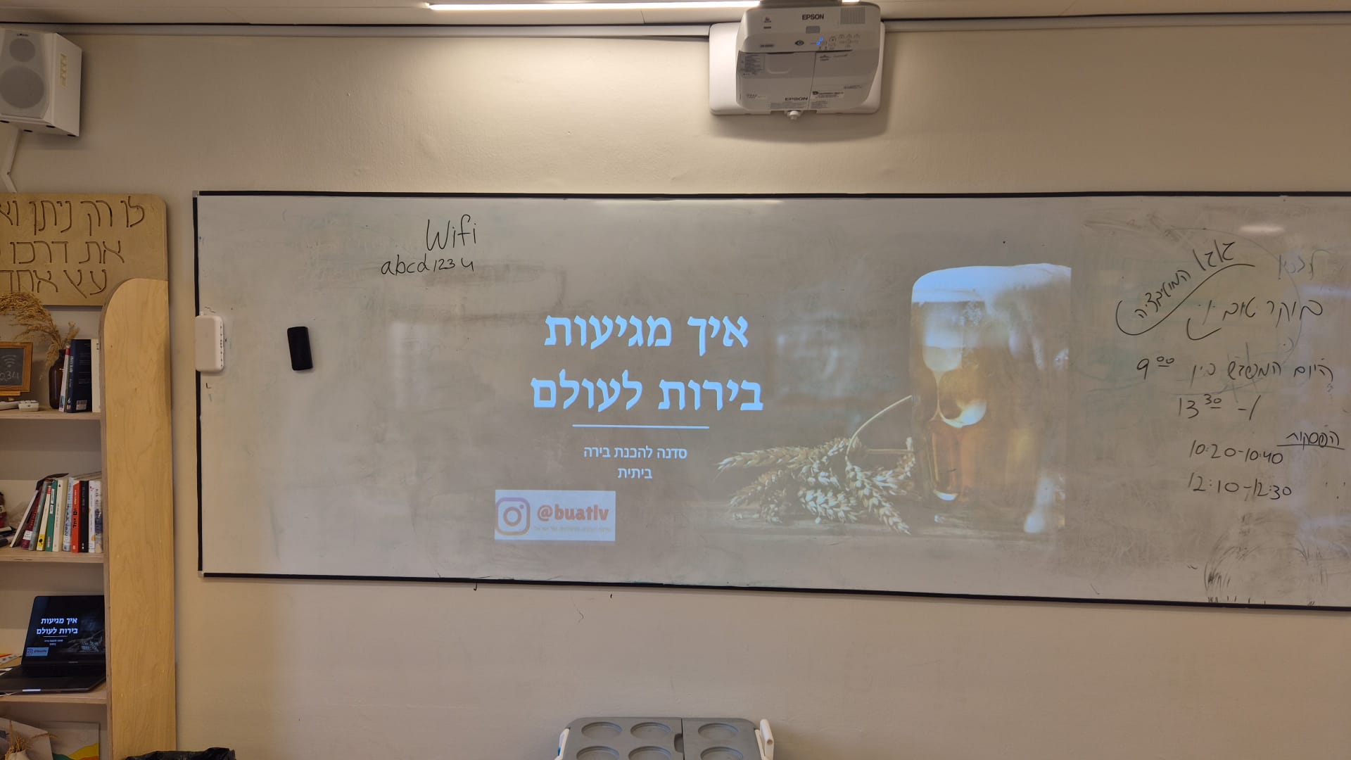 הסדנה שנמשכה כשעתיים וחצי והועברה ע"י פלג מגן מחברת "בועה", וכללה למידה על עולם הבירה, טעימה של 8 סוגי בירות מיוחדות, הכנת בירה משותפת וכיבוד קל ונשנושים המותאמים לבירה.