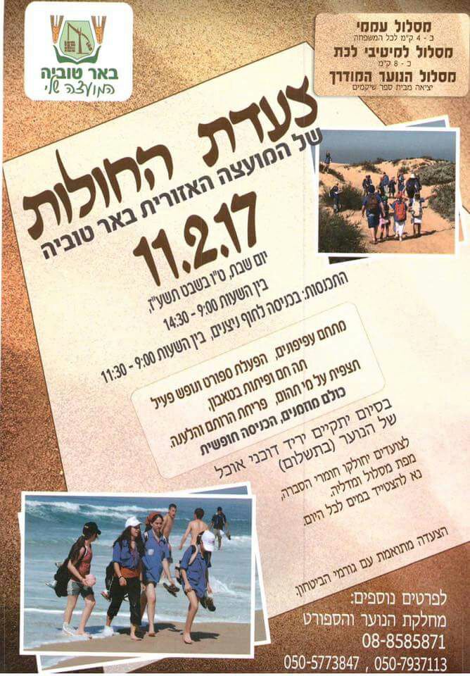 מסורת שנתית במועצה האזורית באר טוביה - צעדת החולות והפעם ה- 22 במספר. זהו מפגש מיוחד המפגיש את כל תושבי המועצה יחד לפעילות משותפת והנאה מאוצרות הטבע.