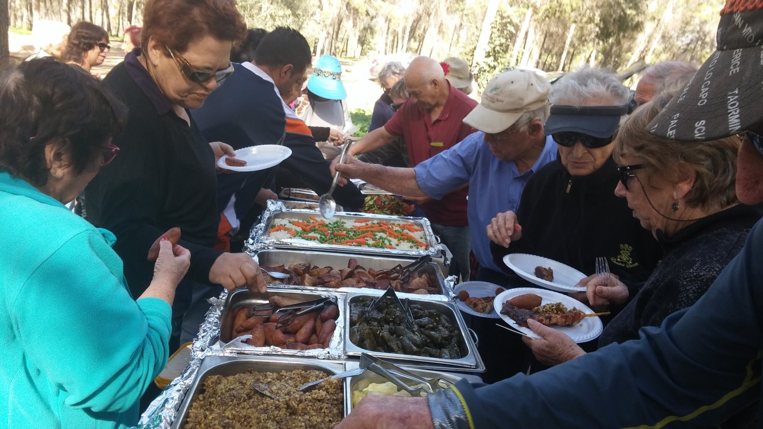 ארוחת צהרים הייתה הפתעה אמתית, ביער שחריה/המלאכים חיכו שולחנות ערוכים בכול טוב בניצוחו של הקייטרינג של סמי, הרקפות הקיפו אותנו כזרים ורודים בכול פינה והיין זרם עם ברכות יומולדת לוותיקי המושב.
