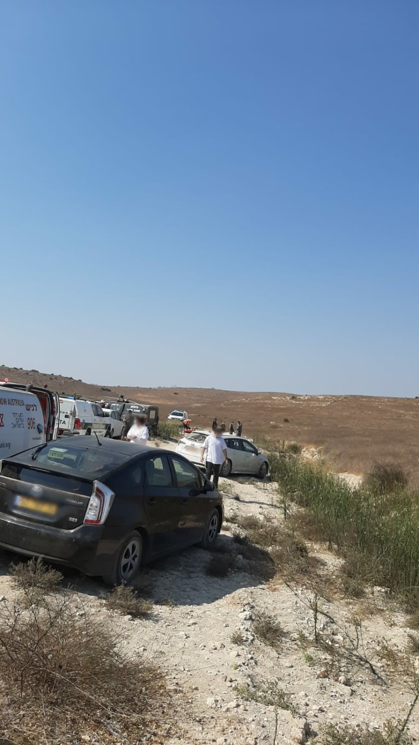 . ניר זכאי ואורי שלווה חובשים באיחוד הצלה שהעניקו סיוע רפואי ראשוני: "מדובר בטרקטורון שהתהפך לתוך ואדי, הענקנו סיוע רפואי ראשוני לשלושת הפצועים שסבלו מחבלות בכל חלקי גופם." צילום: דוברות איחוד הצלה.