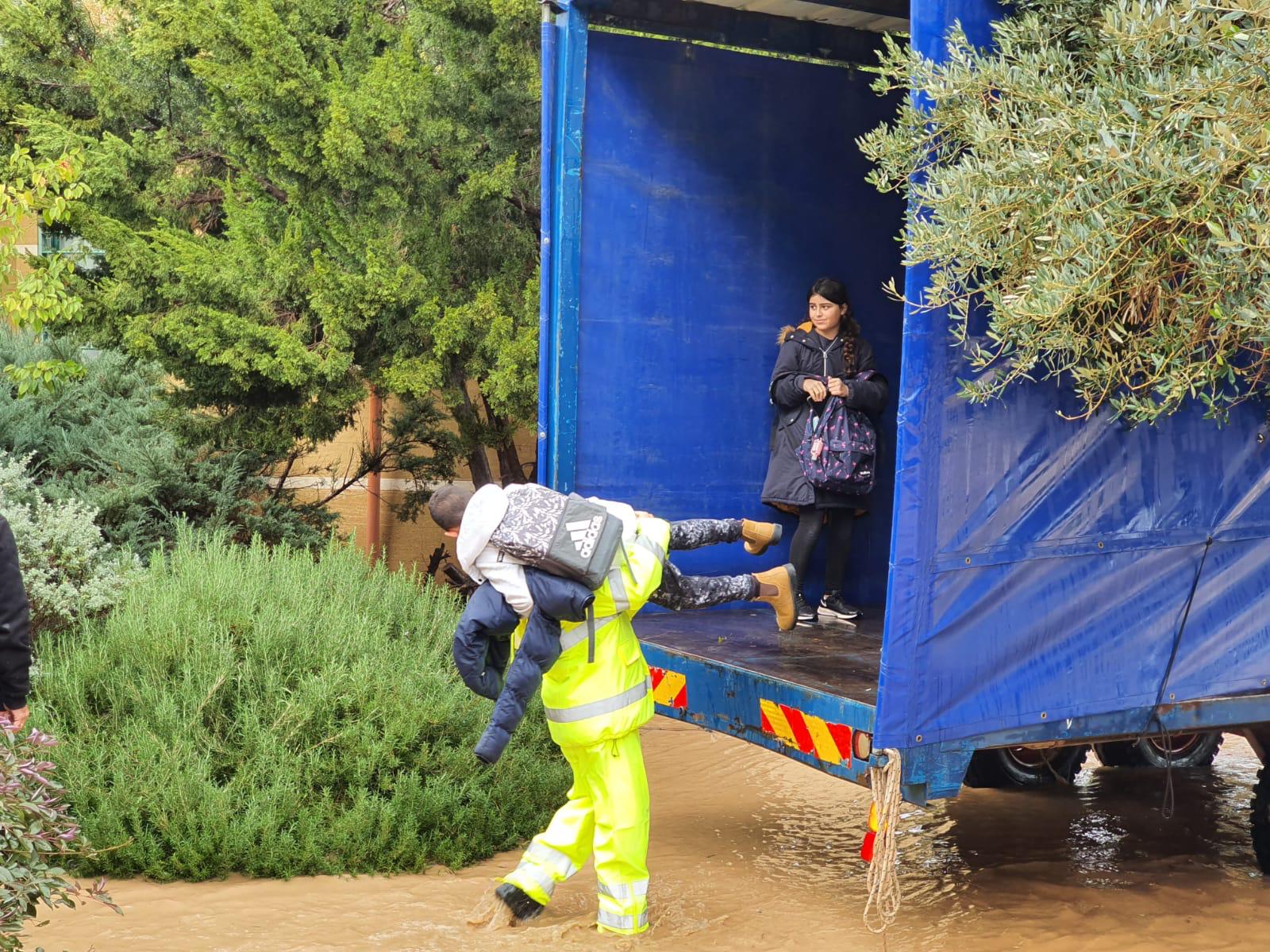בהודעה שהועברו להורי התלמידים, לפני תחילת הפינוי, נכתב: "הורים יקרים, בעקבות הגשם הרב שירד הצירים המובילים אל בית הספר מוצפים וחסומים כעת. כל התלמידים נמצאים בפעילות עם הצוות בחדר מחומם". צוותי הכיבוו הגיעו למקום על מנת לסייע בפינוי שבילי הגישה.