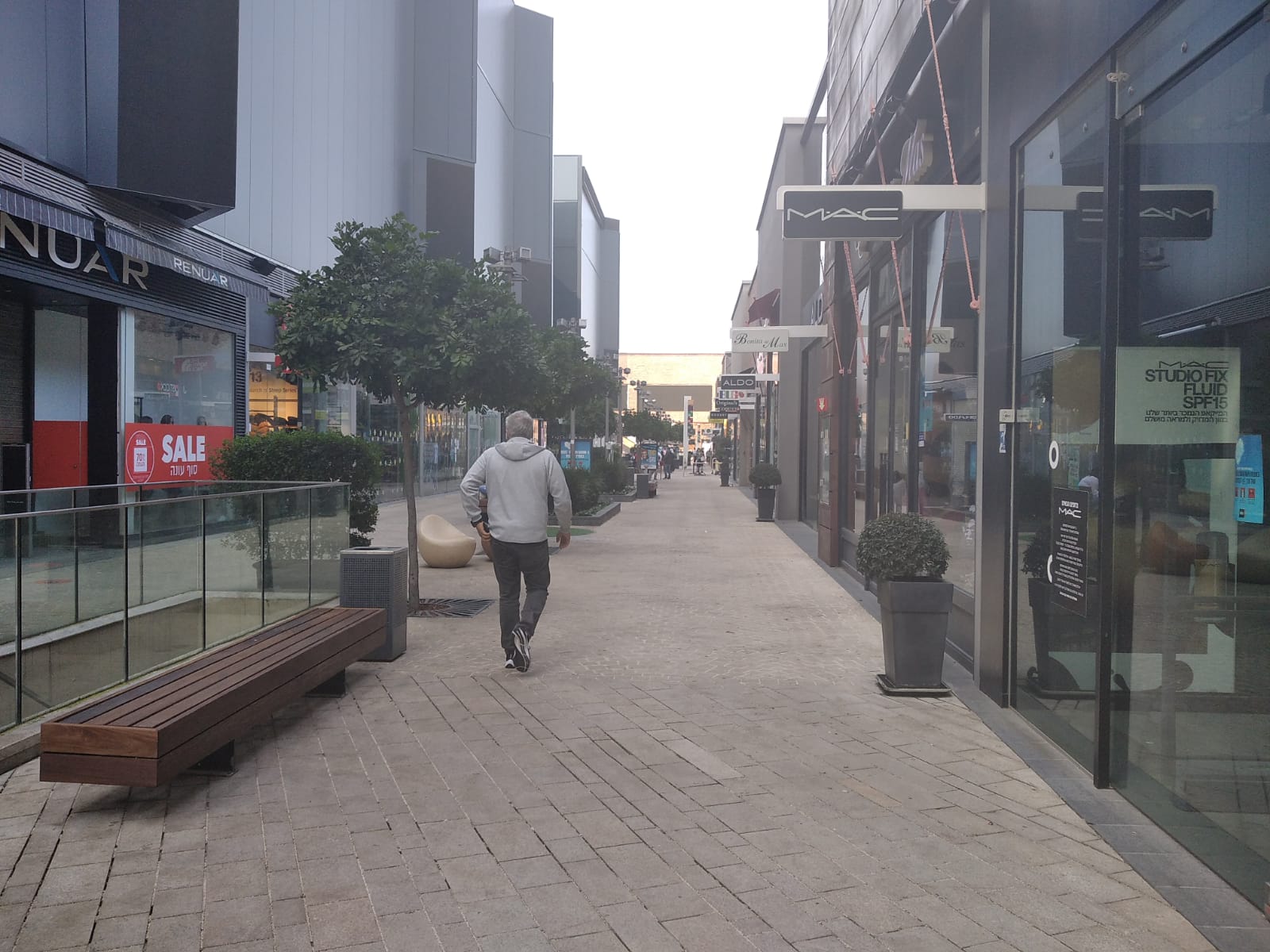 מלבד המסעדות שפתחו את שעריהן לשירות טייק אווי, נפתחו גם מספר חנויות בגדים, שאמנם מנעו את הכניסה אליהן, אך איפשרו לבאים לבצע הזמנה או החלפה באמצעות דוכן שירות שהוצב בכניסה. התחושה בעיקר, כי אנשים הגיעו לספוג קצת שמש תוך כדי שהם מסתובבים במתחם.