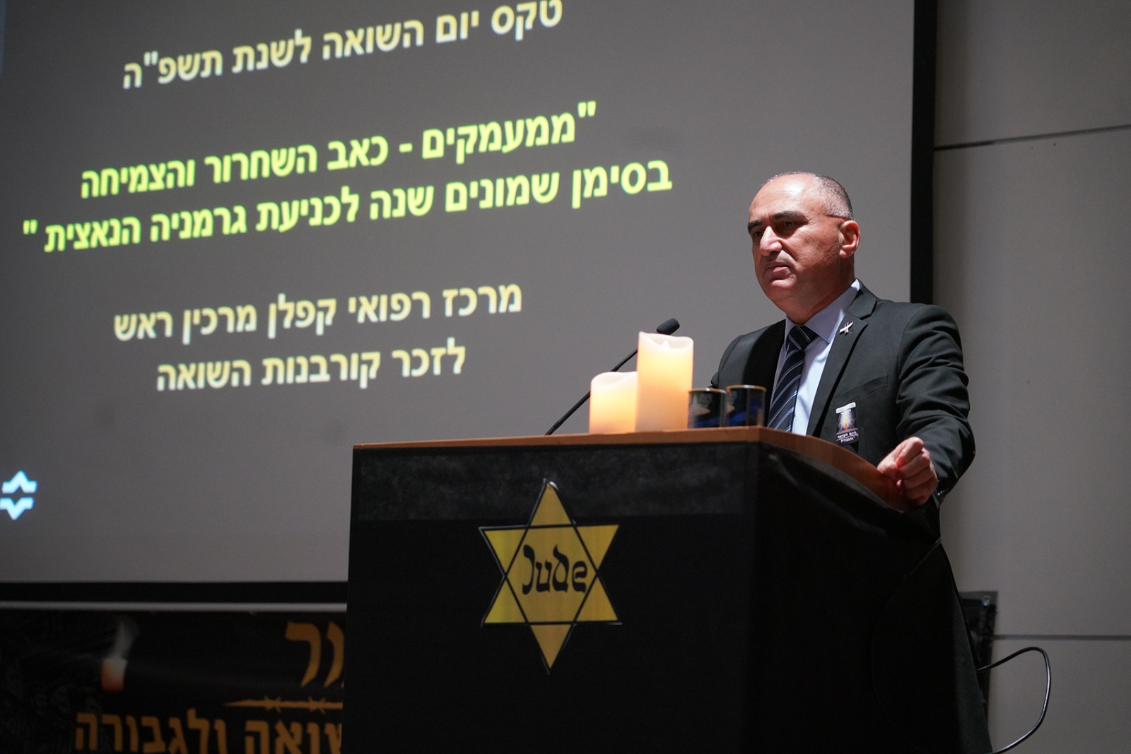 הבוקר (24.4), התקיים במרכז הרפואי קפלן טקס יום הזיכרון לשואה ולגבורה בסימן: "ממעמקים – כאב השחרור והצמיחה", לציון 80 שנה לכניעת גרמניה הנאצית. בטקס השתתפו עובדי המרכז, גמלאים, מתנדבים והנהלה – כולם התכנסו יחד באודיטוריום בית החולים לצפירה ולטקס שמחדד את המחויבות, לזכור ולא לשכוח את ששת המיליונים שנספו בשואה.
