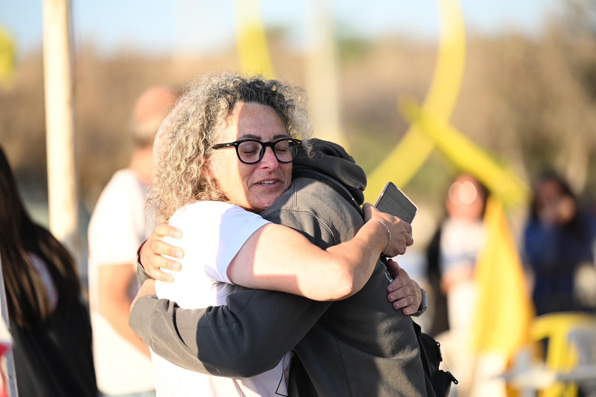 קהילת שער הנגב כולה מתרגשת בצומת הקשתות ומצפה לראות את גלי זיו ועמרי בבית. מאות אנשים זורמים משעות הבוקר לצומת הקשתות שהייתה סמל למאבק להשבתם של החטופים, בהמתנה לשובם של גלי זיו עמרי חבריהם משער הנגב וכל החטופים
