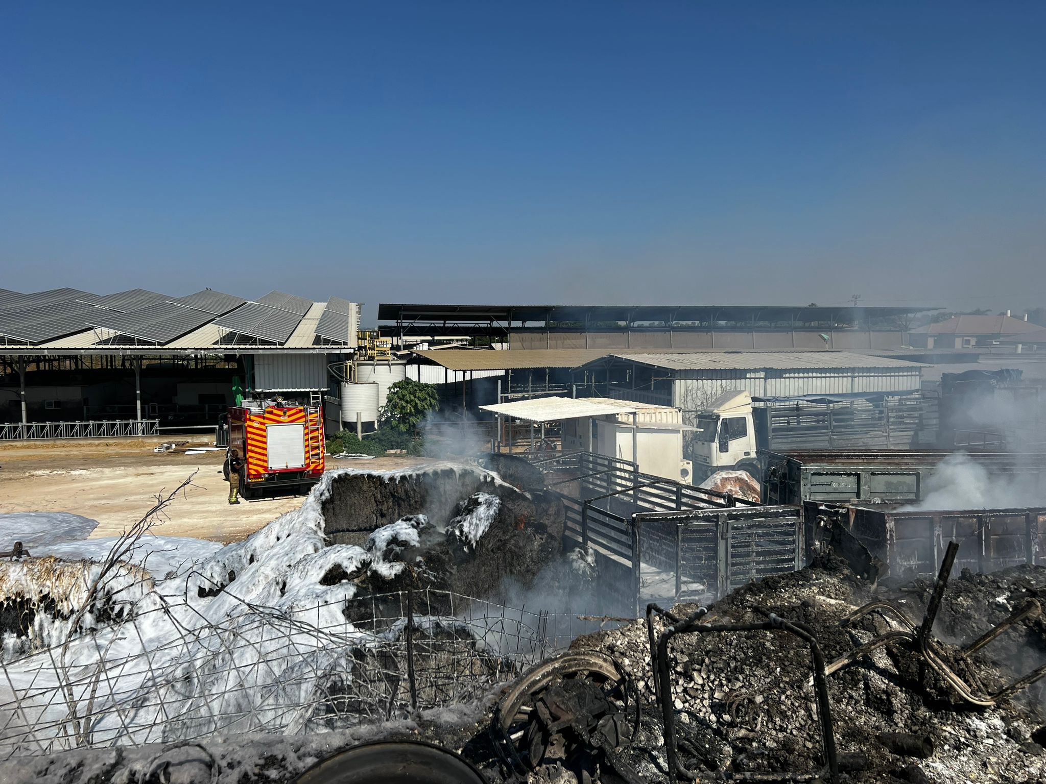 בזמן השריפה מפקד משמרת רב רשף מיכאל סנסורה חילק את הצוותים לארבע גזרות על מנת להכיל את השריפה. עוד מסר מפקד המשמרת: ללא הנחישות והסיכון שלוחמי האש לקחו בזירה בתים היו עולים באש וגם בעלי החיים היו מתים. בזמן השריפה נדלק צובר גז בגודל 10 טון שכרגע עדיין בוער ונמצא בהשגחת לוחמי האש. טרם הושגה שליטה על השריפה. באירוע אין נפגעים. חוקר דליקות מטעם כבאות והצלה לישראל תחנת אשדוד הוקפץ לזירה. צילום תיעוד מבצעי דוברות כבאות והצלה