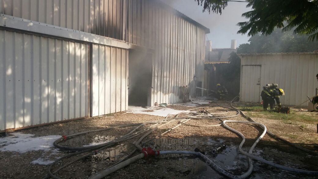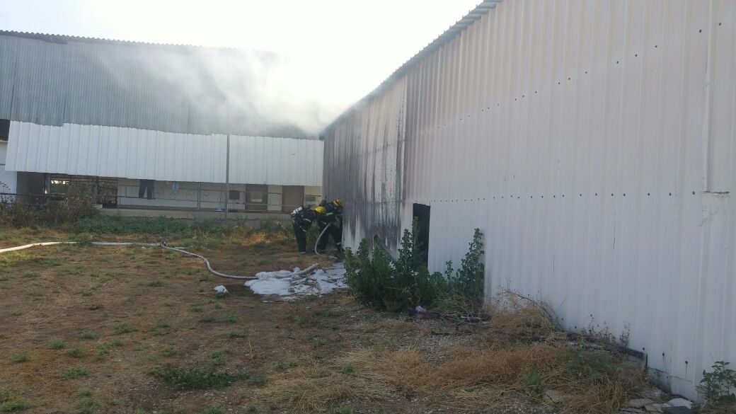 שריפת מחסנים במושב ינון נזק לציוד במקום
