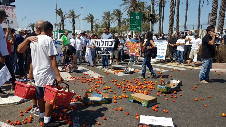 החקלאים  הגיעו היום עם שלטים משאיות ועגבניות,  להראות שיש ברשותם תוצרת חקלאית שלא מאפשרים להם למכור אותה.  הם מדגישים שאין מחסור בעגבניות בישראל. אתמול רגע לפני המחאה פרסם חקלאי מהצפון פוסט בפייסבוק המזמין  את האזרחים לבוא ולקטוף עגבניות בחינם מדובר במעל 750 טון עגבניות (חברת ר.ל.פ.י חקלאות בע"מ גבעת עדה).