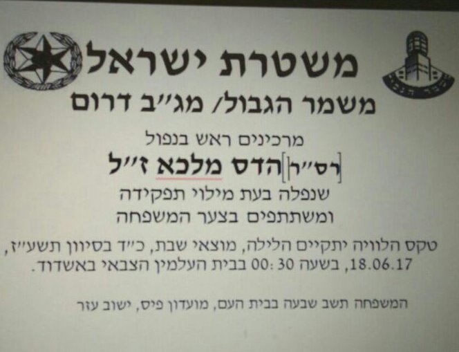 הדס הותירה אחריה הורים, 2 אחים ו-3 אחיות , מועד הלוויה ב00:30 בלילה בבית העלמין אשדוד.