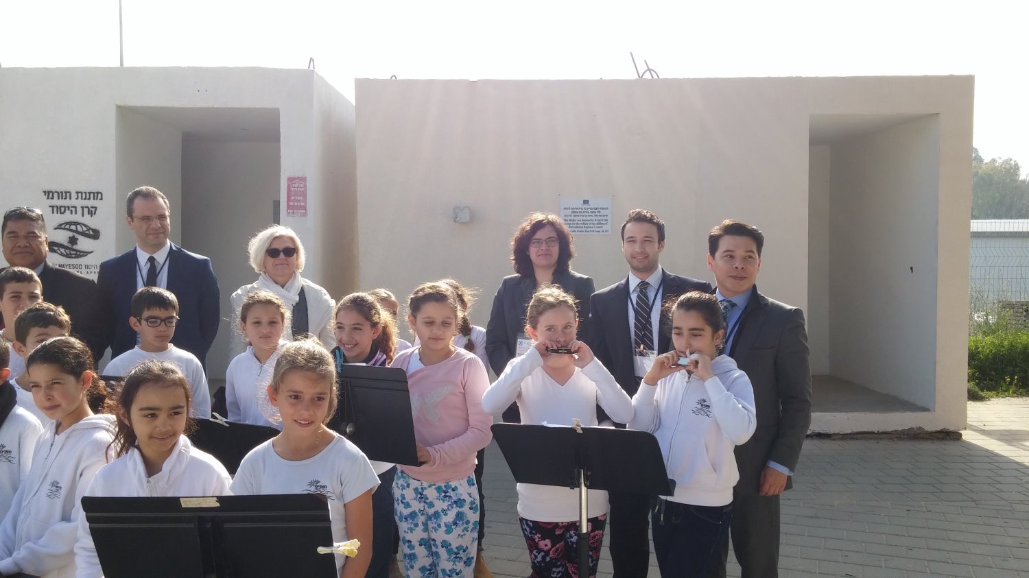 משלחת סגני שגרירים מהאו"ם הגיעו לחנוך מתחם הסעות ממוגן בקיבוץ יד מרדכי