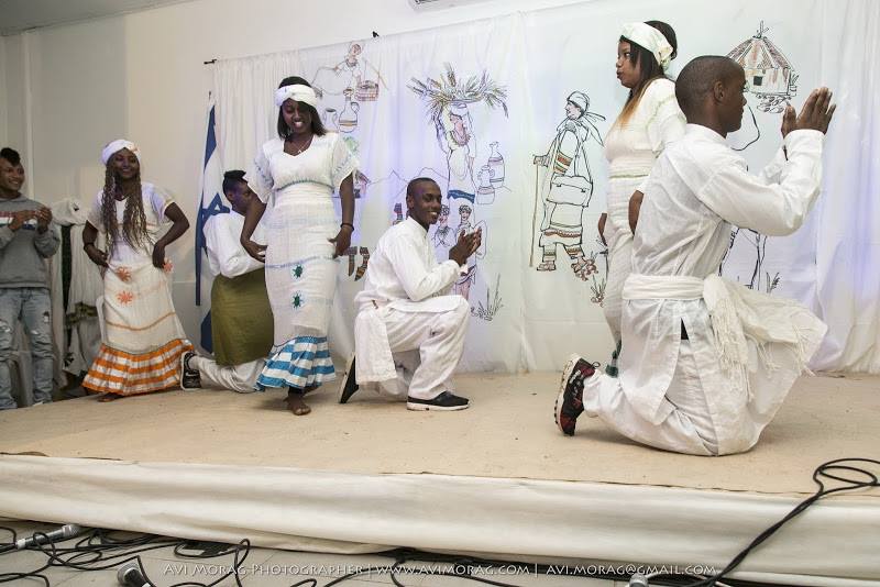 הבוגרים הציגו לנשיא תערוכת תלבושות וחפצי אומנות מהמסורת האתיופית.