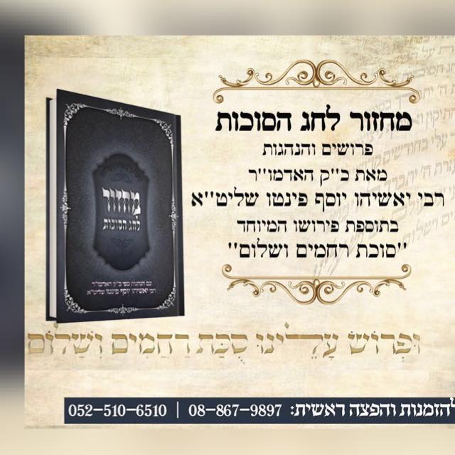 ערב חג הסוכות בקהילת קודש שובה ישראל הזדרזו להוציא את מחזור התפילה לחג הסוכות עם ביאורים ופירושים בפרד״ס על התפילות והחגים מפי האדמו״ר הגה״צ רבנו יאשיהו יוסף שליטא זאת לאחר שחולקו עשרות רבות של אלפי ספרים לראש השנה שיצאו השנה וספרים לסליחות ועוד ספרים על התפילה שיצאו על תפילות שבת קודש וסידורים עם פירושים עמוקים והנהגות מפי האדמו״ר.