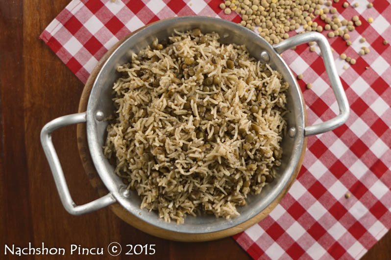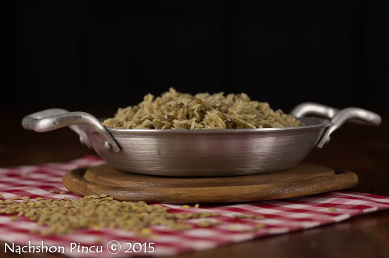 בוררים את העדשים, שוטפים היטב ומסננים. שוטפים ומסננים את האורז.