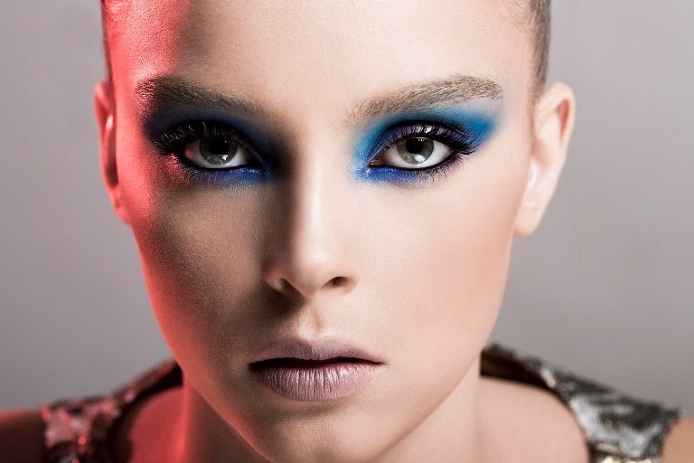 איפור: הצללות והארות רכות. "פיסול" רך של הפנים. הנחה "לא עשויה" של צלליות במרקמים שונים. צלליות אבקה וצלליות קרם מונחות בטפיחות סביב העין והנחת גלוס על הצללית המדמות מראה רטוב. קו האייליינר הקלאסי מנוקד בלבן. הצלליות הונחו עם מכחולי טקסטורה, כדי להעניק מראה המדמה אלמוגים ושוניות דגים.