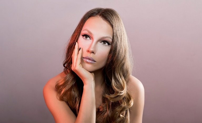 שיער: יצירת "מסגרת" לפנים. הסתרת המצח והגבות. צביעת השיער בגוון אגוז לוז.