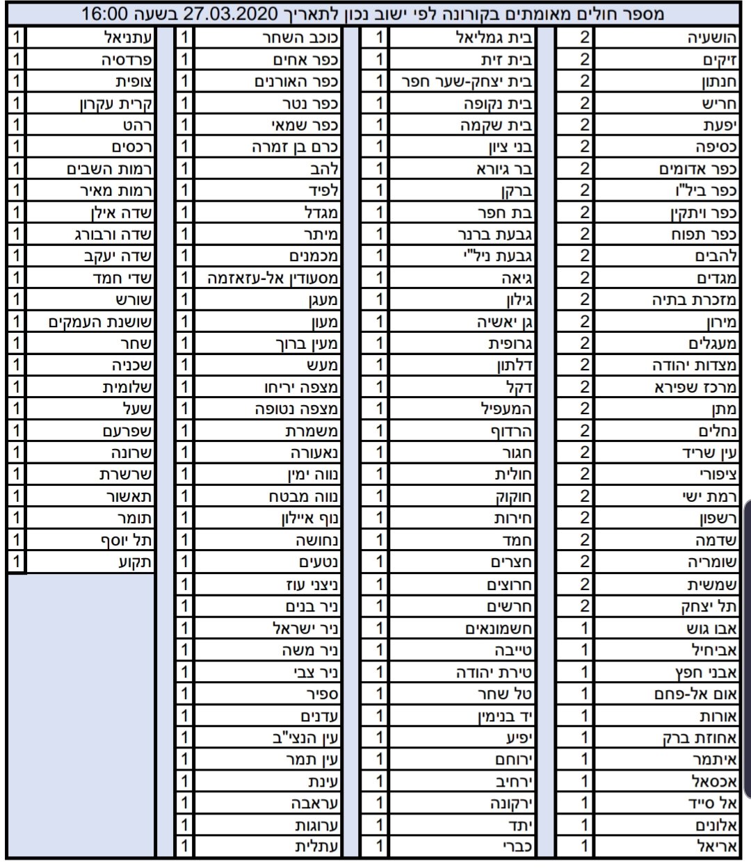 המספרים ממשיכים לזנק וגם הגיעו ליישיבי הדרום  היישובים בהם פורסם חולים מאומתים :