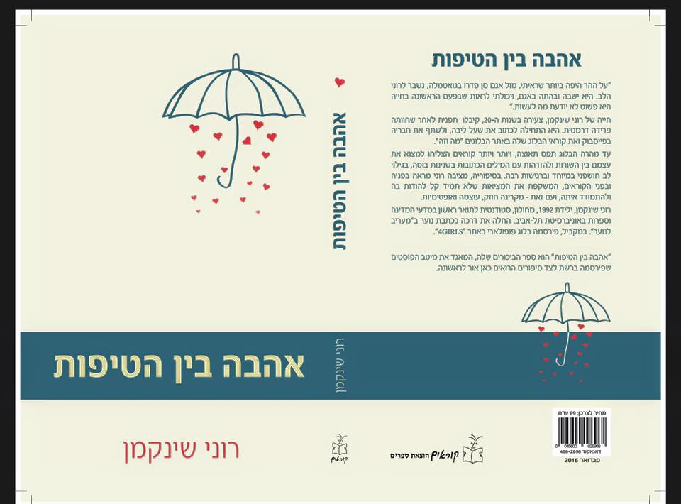 "אהבה בין הטיפות" הוא ספר הביכורים שלה, המאגד את מיטב הפוסטים שפרסמה ברשת לצד סיפורים הרואים כאן אור לראשונה.