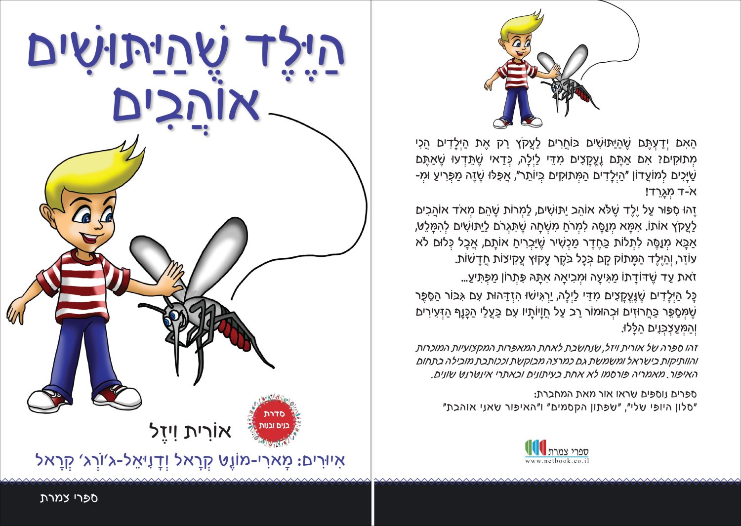 ויש גם ספר לבנים! הספר "הילד שהיתושים אוהבים" מתאר בחרוזים ובהומור את תסכוליו של ילד שנעקץ מדי לילה על ידי יתושים. הוא מתמרח בכל מיני משחות, מנסה להיעזר במכשירים שונים- אבל כלום לא עוזר עד לפתרון המפתיע.