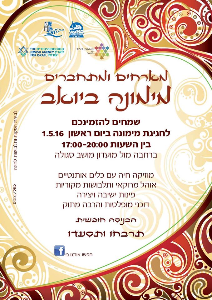 היום בשעה 17:00 חוגגים מימונה במועצה אזורית יואב בלבוש אוטנטי מאהל מרוקאי מוזיקה חיה ועוד.. תהנו